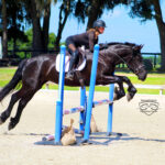 DSR Mystic Primrose aka Rosé, is a coming 5 year old papered Friesian Cross standing 15.2h tall. This sweet mare is filled with talent, flash, and has a heart of gold. She is currently schooling training and first level dressage with plenty of potential to climb up the levels. She scored a 70+% at her first show and marched around without batting an eye. She has three correct, balance gaits that are super comfortable to sit. She is easy in the contact and moves off the leg nicely. She is not a hot, forward ride, but not a kick ride either making her a perfect mount for adult amateur or junior riders. She is simply steady, sane, safe, and a smart girl that is always happy to please. She is currently jumping novice height with scope for plenty more. This girl is brave and honest to everything put in front of her. She doesn’t get hot or drag you to the fences. She steadily approaches and will leave whereever you ask her to. She loves to jump but will be more than happy to be a dressage queen as well. She enjoys both equally and clearly has talent in any direction. Rose is solid to hack out, play through obstacles, head out on a trail, and has even enjoyed swimming in a pond. We find this girl to be wise beyond her years. She retains everything you teach her making her every rider’s dream. Rose will load, tie, trailer, travel as well as bath, be pampered, and loved on like the queen she is. She enjoys all aspects of her job even just hanging out in the ring while her rider sips a glass of Rosé. This girl checks all the boxes and more of young horse. She is sound, no maintenance, no vices, no issues. She has a recent full PPE and clean Xrays on file so she is ready to hop right on your trailer. She is barefoot, an easy keeper, and a pleasure to have in the barn. Ocala, fl. Sale only.