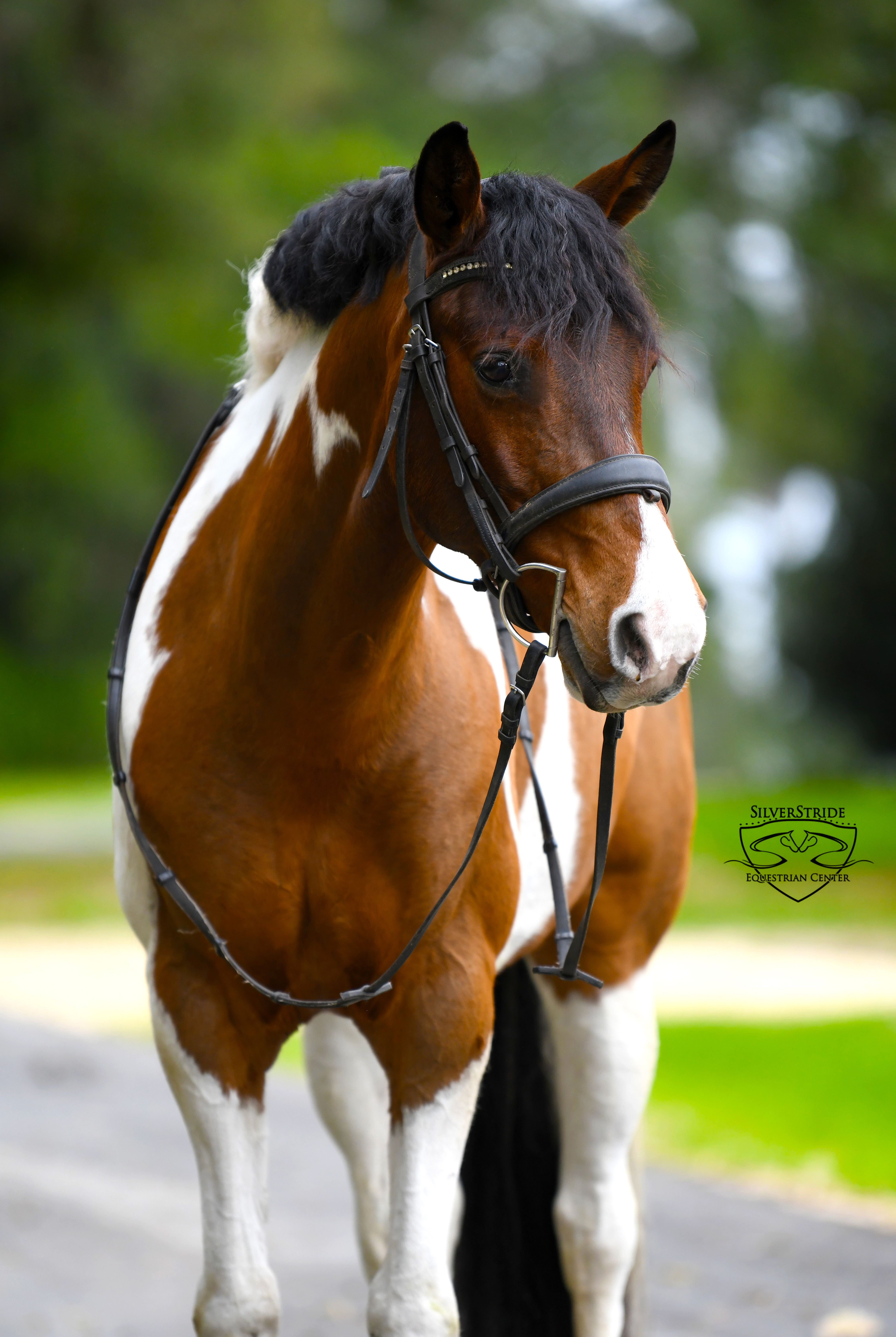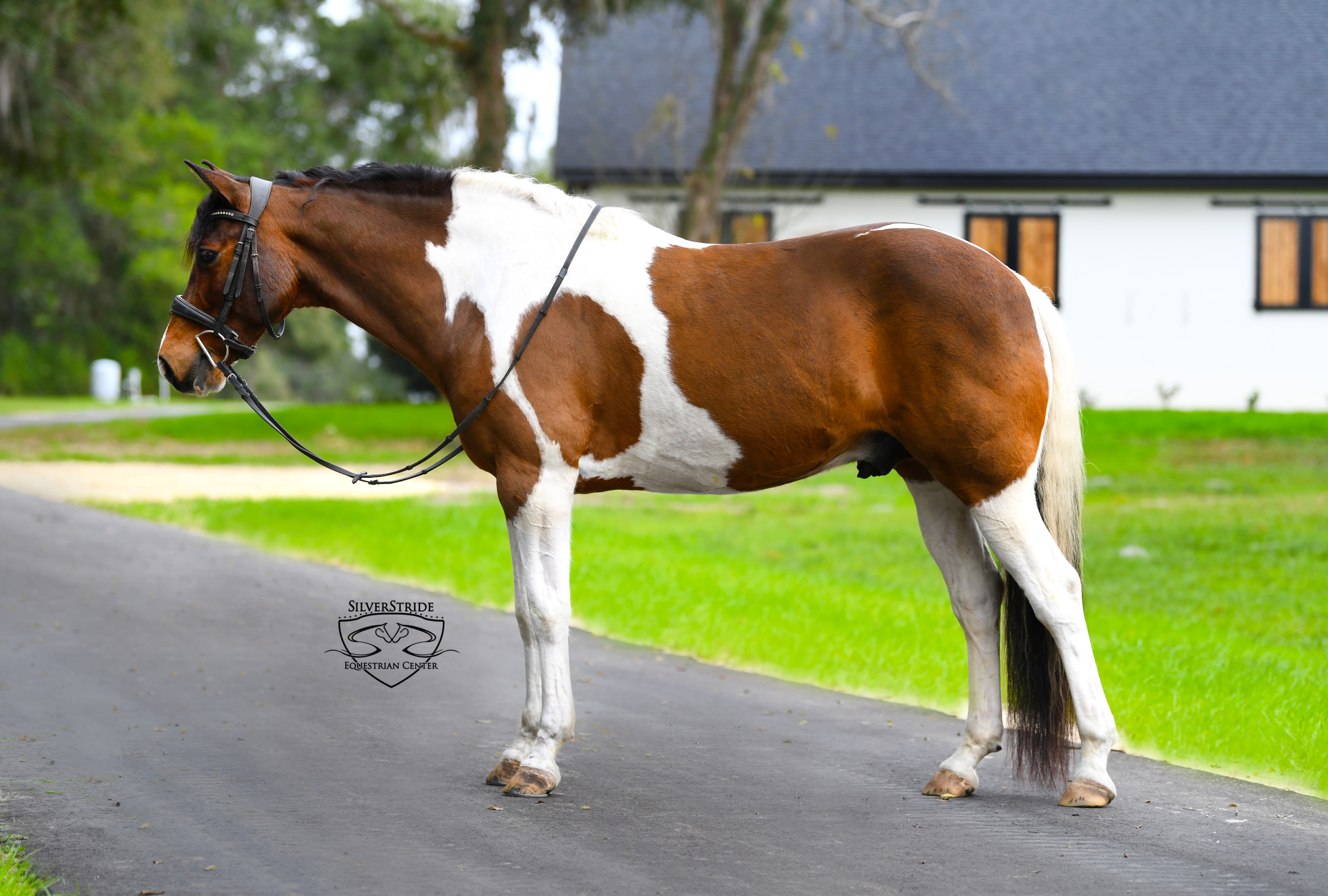 EyeSpy with my little eye something that is…..SAFE, STUNNING, FLASHY, FUN, and ONE HUNDRED PERCENT ONE OF A KIND! Everyone meet EyeSpy! This boy is a lovebug in every single way. I am just a smitten kitten with this gem. You can search all you want you won’t spot another one like EyeSpy. Spy stands 14.3h/ 15h (just a titch under 15h) tall, adult rider in photos and videos is 5ft7. He does everything everyone is searching for. Not only is he your best buddy, put in your pocket type, he is SAFE, kind, sweet, point and shoot type of ride. He can tote around your littles, he can dance down centerline, he can trail ride while you sip your wine, canter down the shoreline on beaches, ride bareback, or jump around a course, and yes…he even offers up his changes around the jump ring! Spy truly does it all. Oh and he has driven up and down highways, busy and back roads too! He will leg yeild and counter canter, started on shoulder in too! He has super comfortable gaits that are easy to sit. He took a detour from dressage for a few weeks to play around with some jumps but picked it right back up when asked! He is so smart in all the right ways. He is happy to ride on the buckle and go play in the hunter jumper world too. He is easy. He will do whatever you ask of him. Spy loves people and simply wants to please. He is happy to do any type of job in any direction. He is just a simple and easy guy. Spy has been very loved and will go to the very best home only as for all of our horses here at SilverStride. Ones like him are hard to find but I spied, EyeSpy! I hope you do too! Because once you lay your eyes on him, you’ll never let him go. EyeSpy has clean, recent X-rays on file for your convenience. He loads, ties, trailers, no vices or issues. Ocala, Fl. No holds or trades. Sale only.