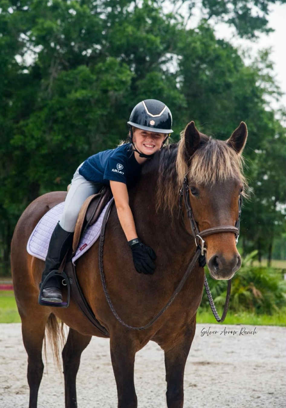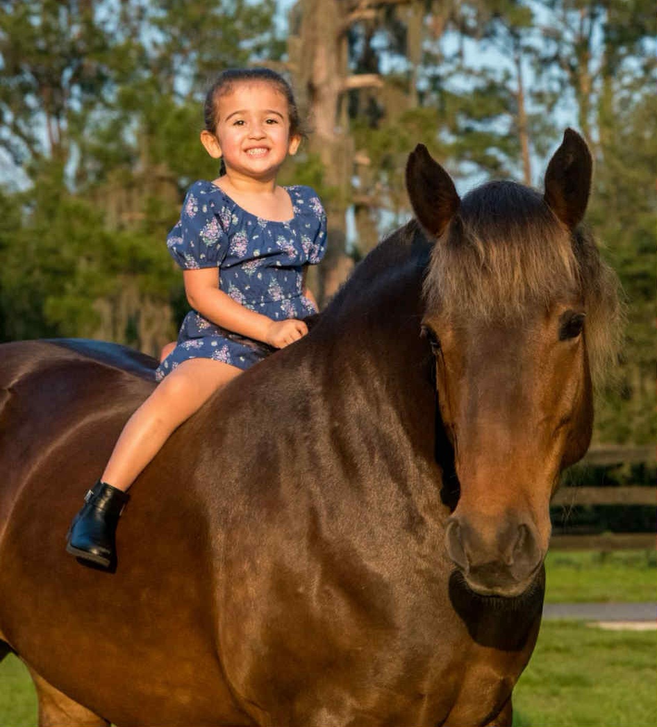 The Easter Bunny is REAL! Here she is. Chocolate colored and life size! Meet April, a 9 year old, 13.3h sweet and stunning mare born on Easter Sunday! April was born into a loving family on Easter surrounded by children from the day she popped out. She has been owned and loved by the same family ever since. April is safe, reliable, sound, sweet, and everything you could want in your child’s pony. She has been everywhere, dabbling in a bit of everything. From trail riding through the Colorado mountains to Florida marsh lands, lessons, babysitter, leadline lessons, hacking out, over fences, bareback, and so much more. This girl does it all. April doesn’t need to be in a consistent program. She can sit in a field for weeks and still be the same girl when you tack her up for a ride. Or she is perfectly happy to ride every day. She is calm, quiet, and easy. The best friend, packer type of mount for children of all ages. She is currently jumping 2ft/ 2ft3 with room for more. She carries a steady rhythm. No prep, no fuss. Just simple and easy. April is kind and gentle on the ground as much as she is under saddle. She has been led around by little ones her whole life, always respecting their little toes. She has been around cattle and nearly every farm animal you can think of. She rides both english and western, or bareback too. Bridle or halter…it really doesn’t matter. April is a very saintly girl whonis always looking to please. No funny business. April is barefoot and a very easy keeper. She has lived outside, stalled, and anything in between. She isn’t picky. She is currently stalled for half the day and turned out the other. But she really doesn’t care. She has been out with others and also pastures alone no problem. No vices, maintenance, or issues. PPEs welcome. Sale only. Ocala, Fl.