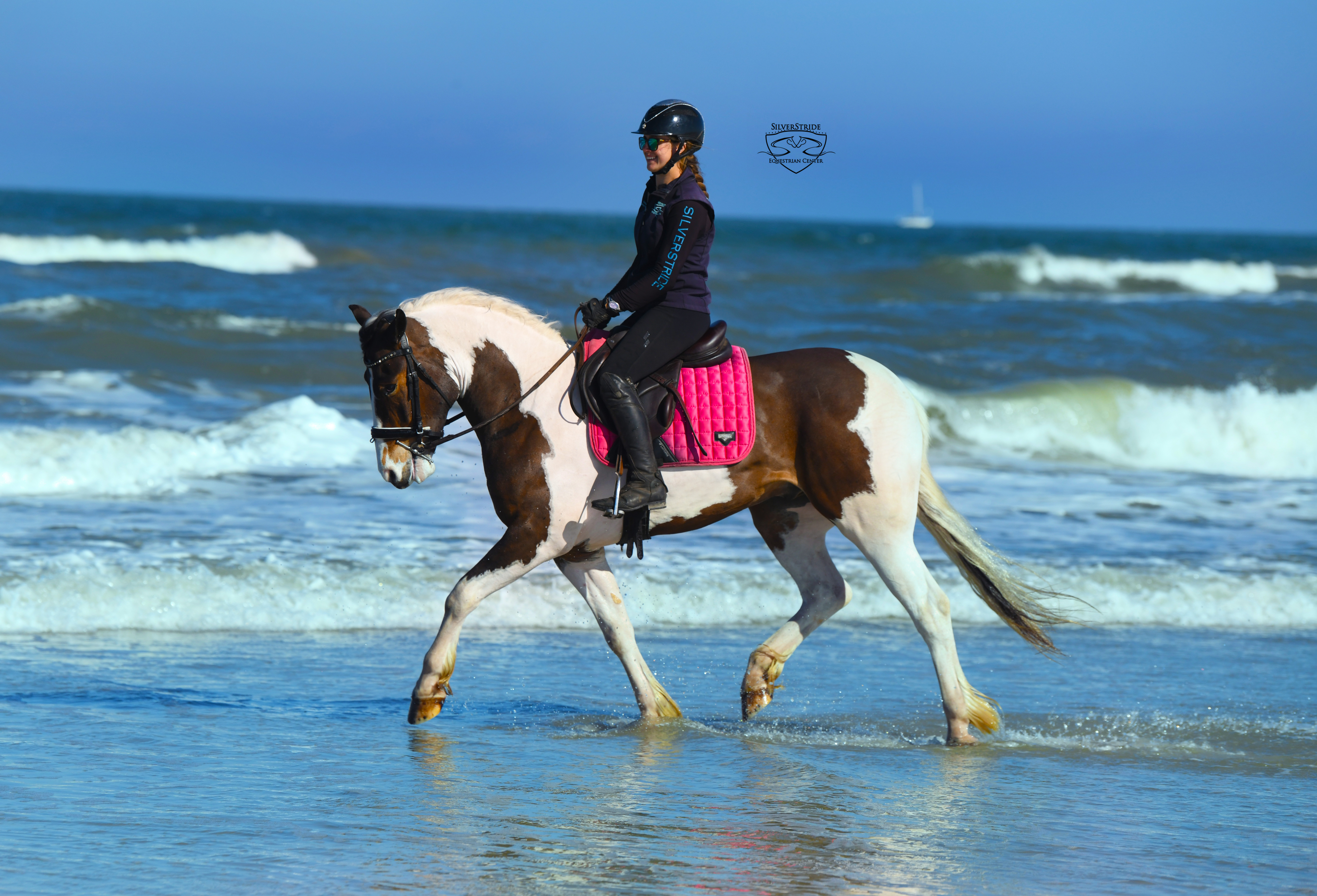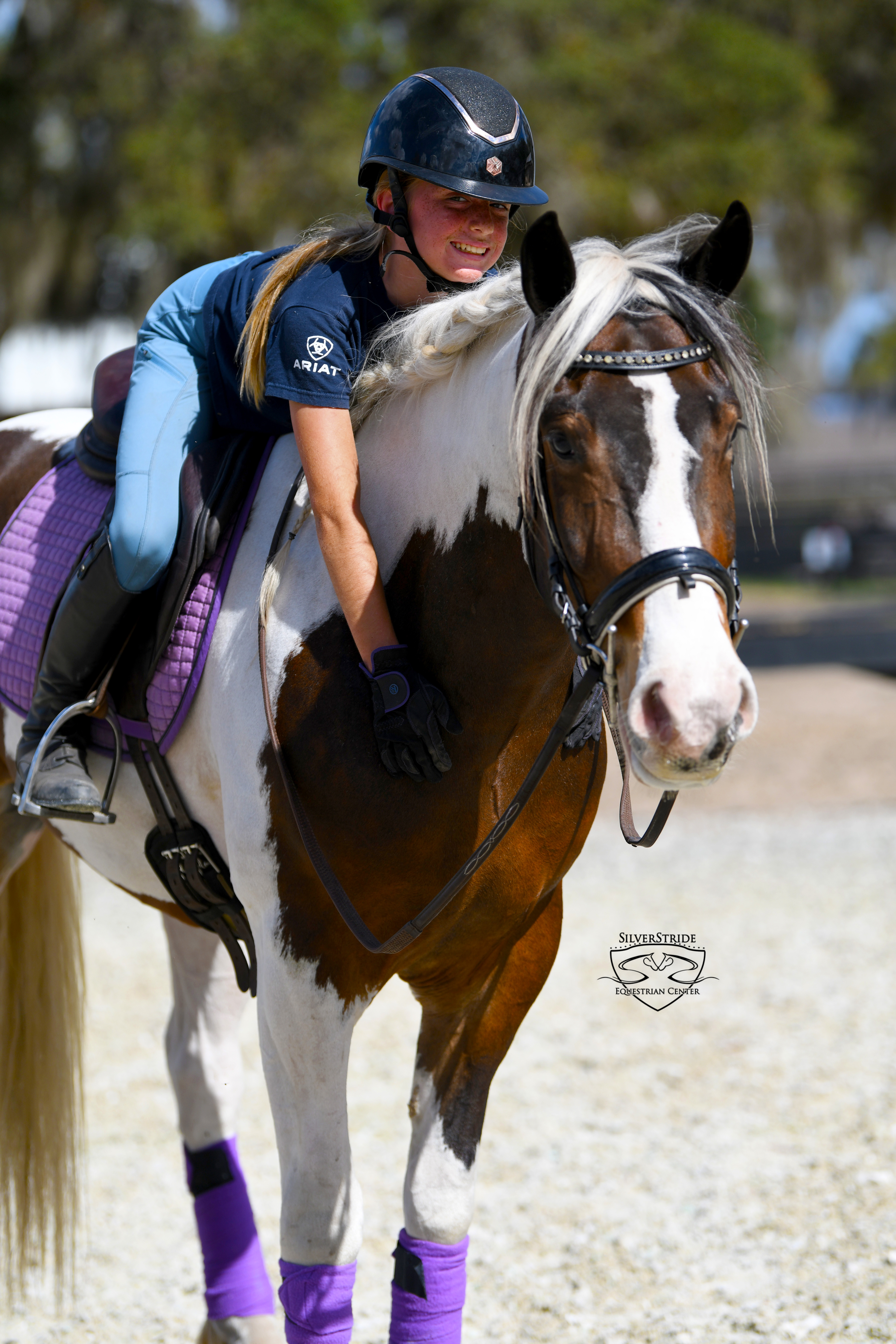 EyeSpy with my little eye something that is…..SAFE, STUNNING, FLASHY, FUN, and ONE HUNDRED PERCENT ONE OF A KIND! Everyone meet EyeSpy! This boy is a lovebug in every single way. I am just a smitten kitten with this gem. You can search all you want you won’t spot another one like EyeSpy. Spy stands 14.3h/ 15h (just a titch under 15h) tall, adult rider in photos and videos is 5ft7. He does everything everyone is searching for. Not only is he your best buddy, put in your pocket type, he is SAFE, kind, sweet, point and shoot type of ride. He can tote around your littles, he can dance down centerline, he can trail ride while you sip your wine, canter down the shoreline on beaches, ride bareback, or jump around a course, and yes…he even offers up his changes around the jump ring! Spy truly does it all. Oh and he has driven up and down highways, busy and back roads too! He will leg yeild and counter canter, started on shoulder in too! He has super comfortable gaits that are easy to sit. He took a detour from dressage for a few weeks to play around with some jumps but picked it right back up when asked! He is so smart in all the right ways. He is happy to ride on the buckle and go play in the hunter jumper world too. He is easy. He will do whatever you ask of him. Spy loves people and simply wants to please. He is happy to do any type of job in any direction. He is just a simple and easy guy. Spy has been very loved and will go to the very best home only as for all of our horses here at SilverStride. Ones like him are hard to find but I spied, EyeSpy! I hope you do too! Because once you lay your eyes on him, you’ll never let him go. EyeSpy has clean, recent X-rays on file for your convenience. He loads, ties, trailers, no vices or issues. Ocala, Fl. No holds or trades. Sale only.